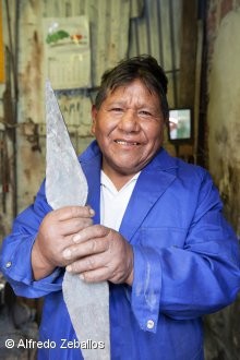 Pablo Cordero, un dels clients de Banco Fie. En Pablo produeix peces de recanvi per la construcció.