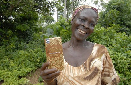 La manera que tenim des d’Oikocredit de contribuir a aquesta justícia social és promoure projectes que generin aquest efecte a les seves societats, principalment a països del Sud. En aquest sentit, unes de les organitzacions sòcies on treballem són Kuapa kokoo, una cooperativa de productors de cacau de Ghana, i amb Divine Chocolate, empresa comercialitzadora de xocolata de comerç just als Estats Units i al Regne Unit. Aquesta col·laboració té una doble vessant; per una banda un model cooperatiu, amb major democràcia interna, i per l'altra banda el sistema de comerç just, que garanteix millors condicions internes i afavoreix als productors i productores dels països en vies de desenvolupament.