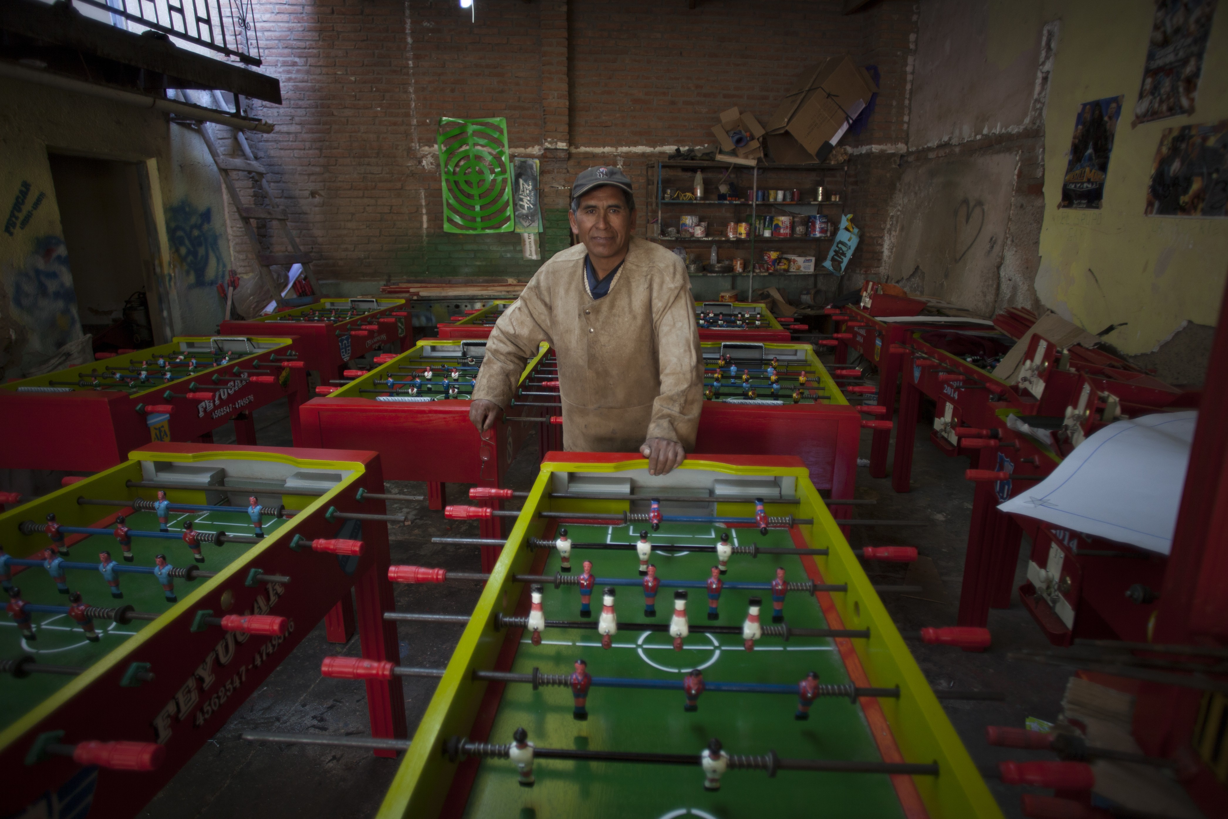 Cochabambako hiri boliviar zalapartatsuan Felix Cárdenasek lanean dihardu, futbol-mahai gorri distiratsuari azken ukituak ematen. Berak eta bere taldeak mahaia eskuz egin eta margotu dute arreta handia jarriz. Egurra tokikoa da eta jokalariak miniaturan landu dituzte diesel motorren pieza birziklatuez baliaturik.