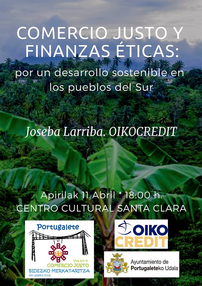 De esta manera, el próximo día 11 de abril a las 18:00 horas estaremos en el Centro Cultural Santa Clara de Portugalete, dando a conocer las conexiones entre el Comercio Justo y las finanzas éticas.