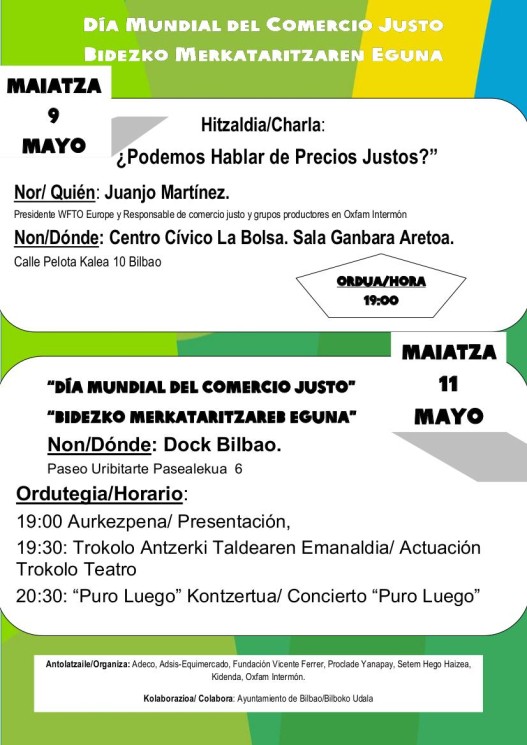 BILBAO. 9 de Mayo. ¿Podemos hablar de precios justos? Juanjo Martínez WFTO Europa. Centro Cívico de la Bolsa Calle Pelota 10.19:00