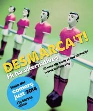 “Desmarca’t, hi ha alternatives”, es el lema que pretén animar a la gent a festejar que existeix el Comerç Just, un comerç que enriqueix a tothom qui juga segons unes regles del joc justes, que hi ha una Banca Ètica que ens permet ser coherents amb els nostres valors i principis i que estem construint una Economia Social i Solidària.